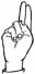 На ћирилици написано ПЕРИША ЛЕВИЧАНИН састоји се из 15 слова [?]. Исписано ћириличном једноручном азбуком за глувонеме: